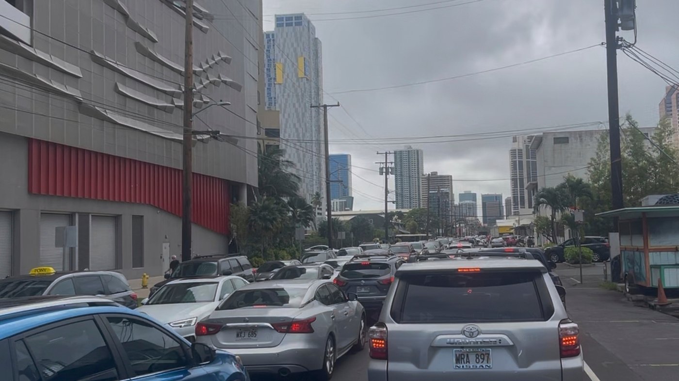 A traffic jam forms in Honolulu on Tuesday, July 29, 2025, as people heed a tsunami evacuation warning that coincided with rush hour following a powerful earthquakes in Russia’s Far East early Wednesday.