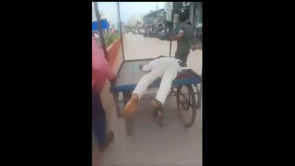 The incident occurred in the Kosgi municipality’s Shivaji Chowk. A video circulating on social media shows two people pushing the cart with the deceased placed in it.