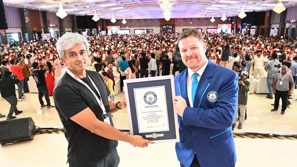 The first surprise is a Guinness World Record for the longest chain of people licking ice cream. The second is that it was broken in Chennai this week, by 4,008 school students — and a lot of ice cream.