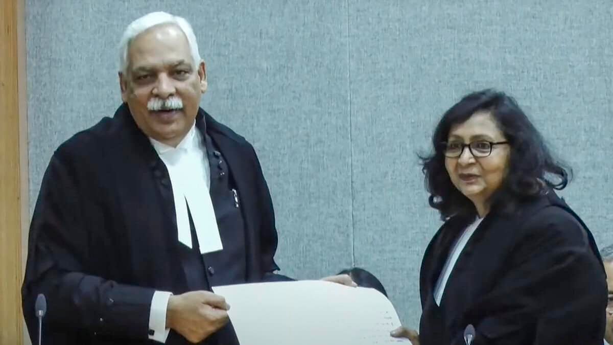 In this screenshot via Delhi HC on Youtube, Chief Justice of Delhi High Court Devendra Kumar Upadhyaya with the newly appointed judge Justice Vinod Kumar during the latter’s swearing-in ceremony, in New Delhi, Thursday, July 24, 2025. (Delhi HC/Youtube via PTI Photo) In this screenshot via Delhi HC on Youtube, Chief Justice of Delhi High Court Devendra Kumar Upadhyaya with the newly appointed judge Justice Shail Jain during the latter’s swearing-in ceremony, in New Delhi, Thursday, July 24, 2025. (Delhi HC/Youtube via PTI Photo)