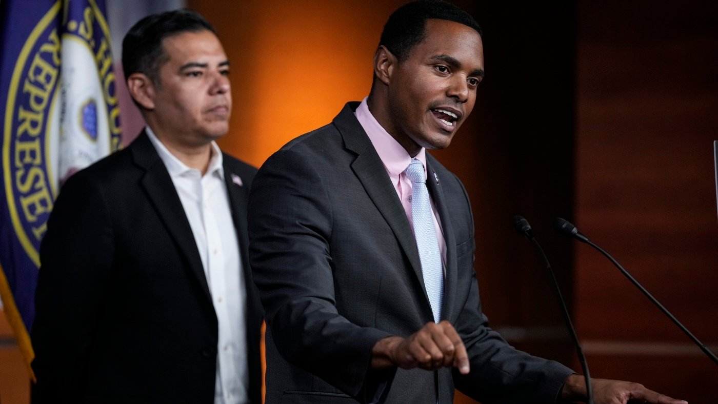 Rep. Ritchie Torres (right), D-N.Y., speaks during a news conference on Capitol Hill July 17, 2023 in Washington, D.C.