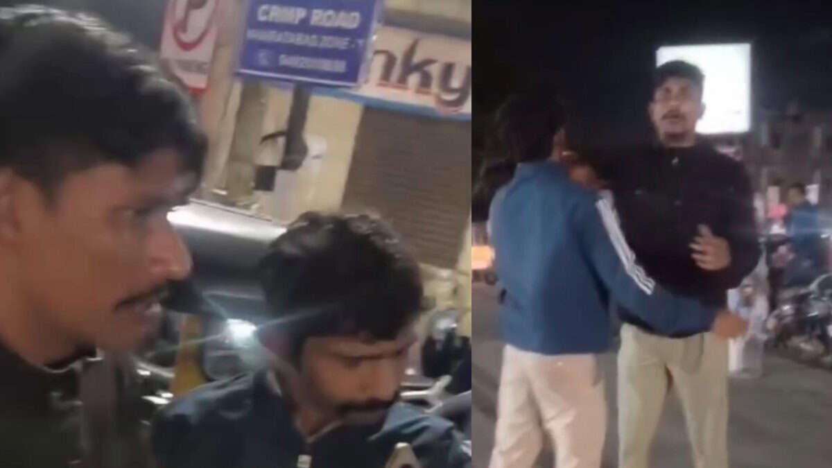 Two allegedly inebriated policemen created a nuisance by stopping two men on a motorbike and assaulting them at Puranapul on Saturday night. Wearing jackets, they argue with the riders, one of whom filmed the video. The video is being circulated by the IT wing of the Hyderabad… pic.twitter.com/Gt9wmN0nRR