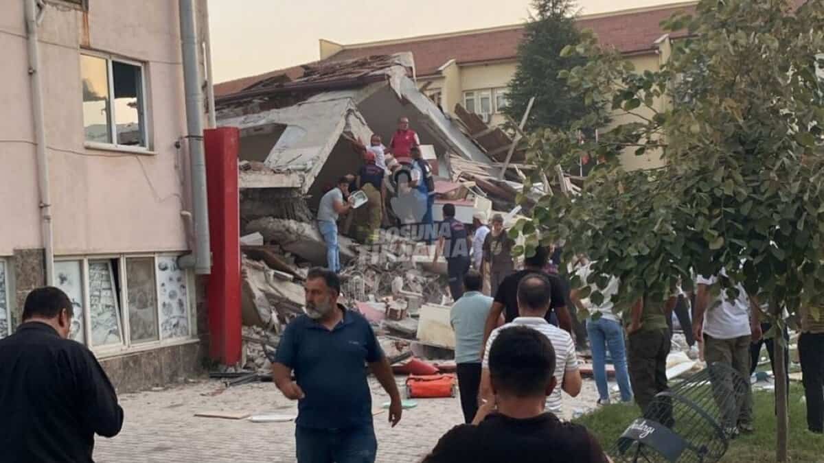 Residents gather around a collapsed building in Balıkesir, Turkey, after a 6.1-magnitude earthquake struck the region. Photo: X