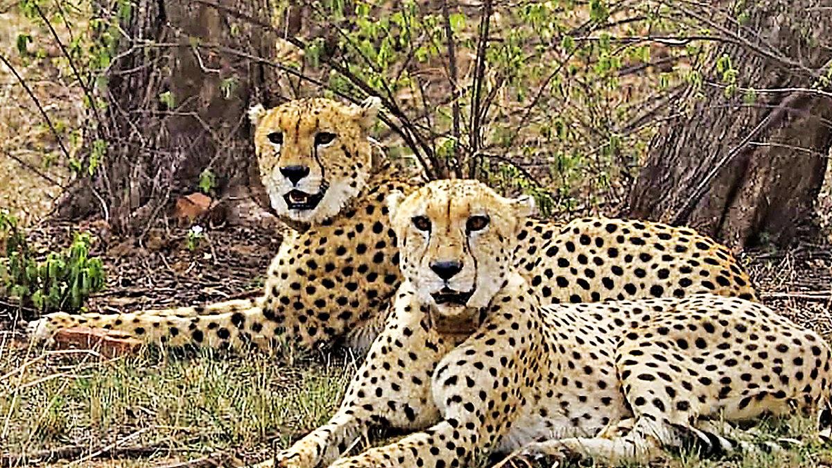 A pair of cheetahs Agni and Vayu were seen resting after a successful hunt and a full meal in the grasslands at Kuno National Park