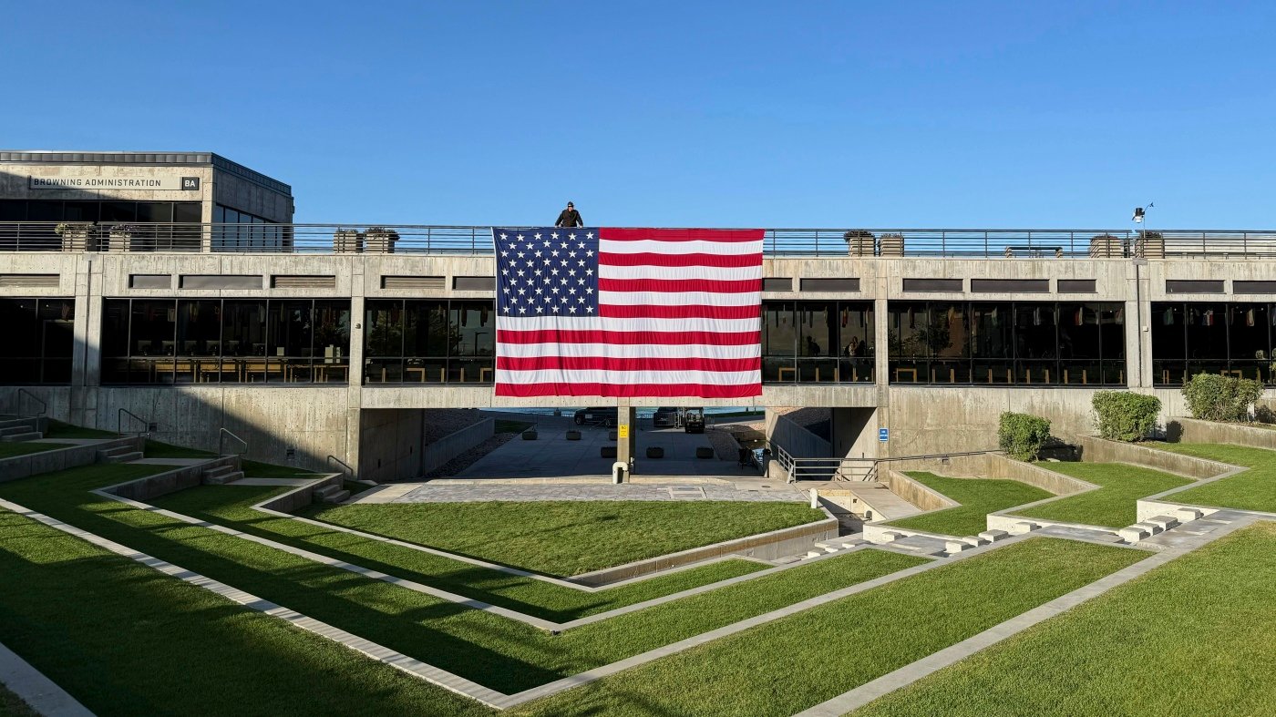 A national flag hangs over the site where conservative activist Charlie Kirk was shot and killed at Utah Valley University last week. Experts say foreign governments have been doing their best to spin events to fit their narratives.
