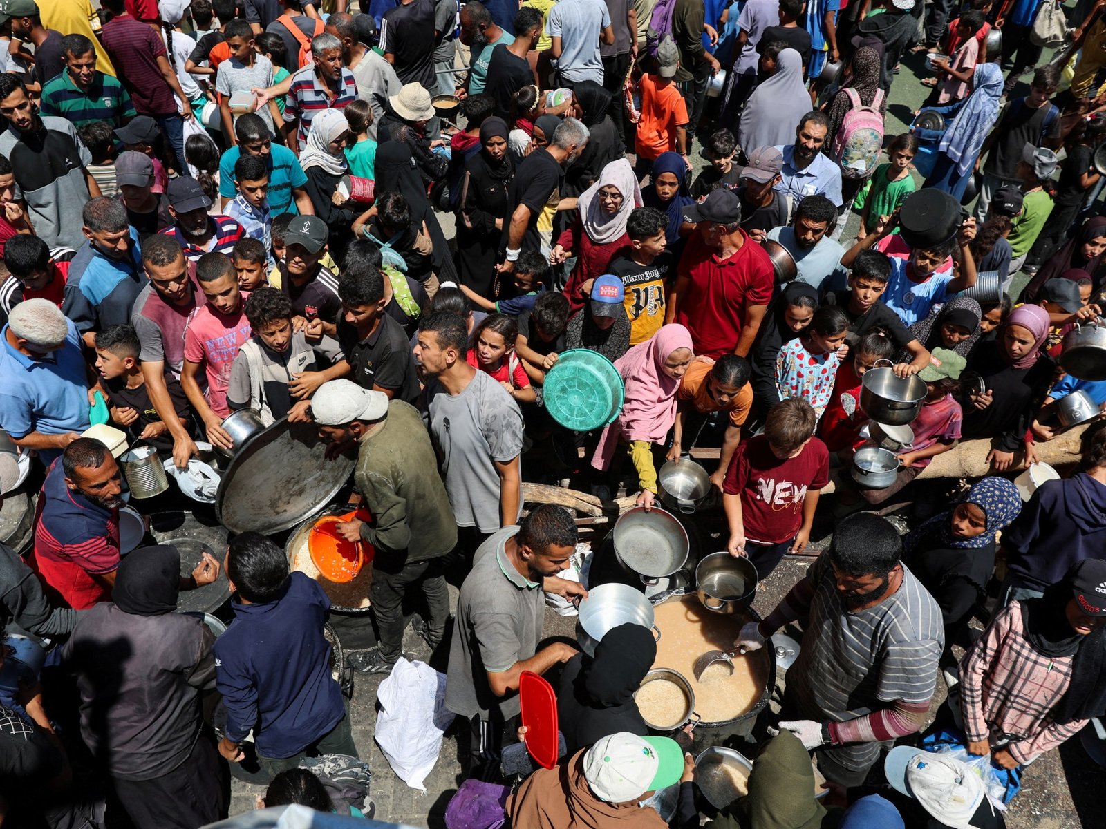 The scene below illustrates the severity of Gaza’s food crisis and the level of desperation for aid, with children clashing over rations and scraping the bottoms of pots for food in the north of Gaza.