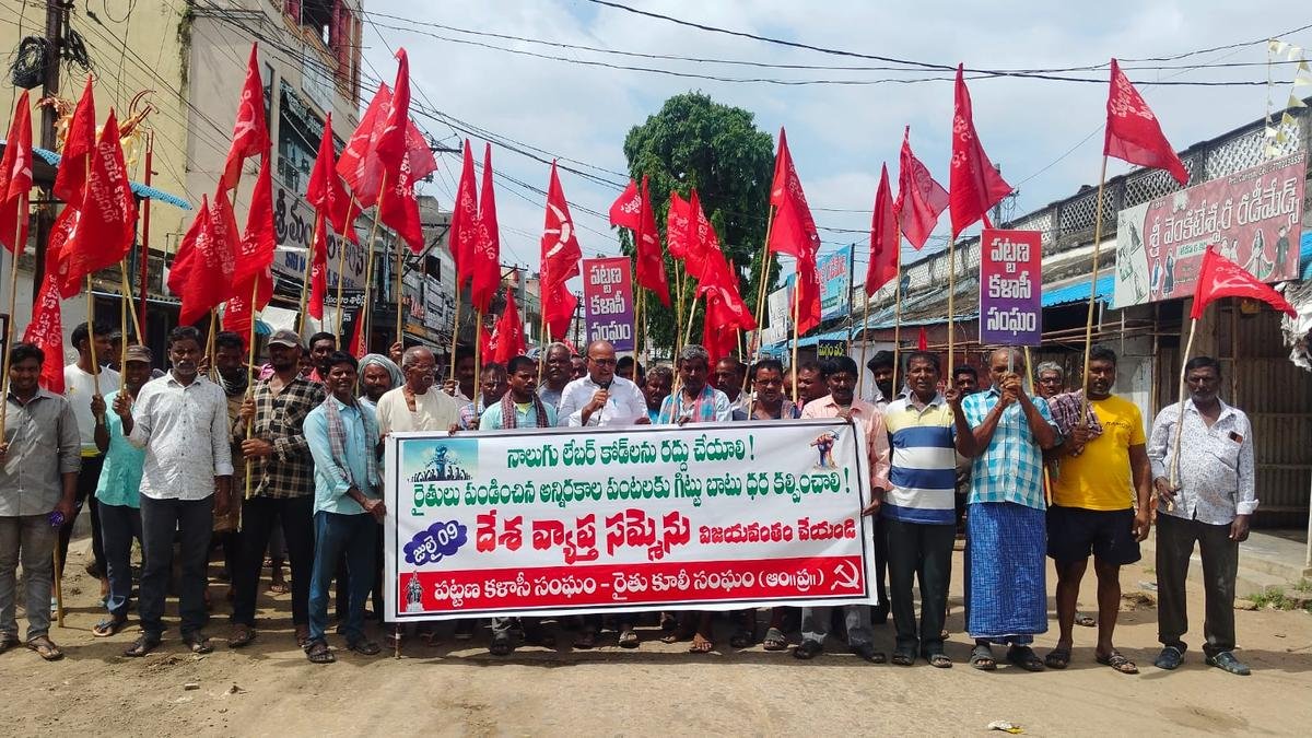 As part of the nationwide strike to oppose the Centre’s Labour Codes and government policies, a massive rally was held in Bobbili on Wednesday, led by various workers’ associations, highlighting the plight of workers of the Bobbili growth center, one of the oldest industrial park in the State