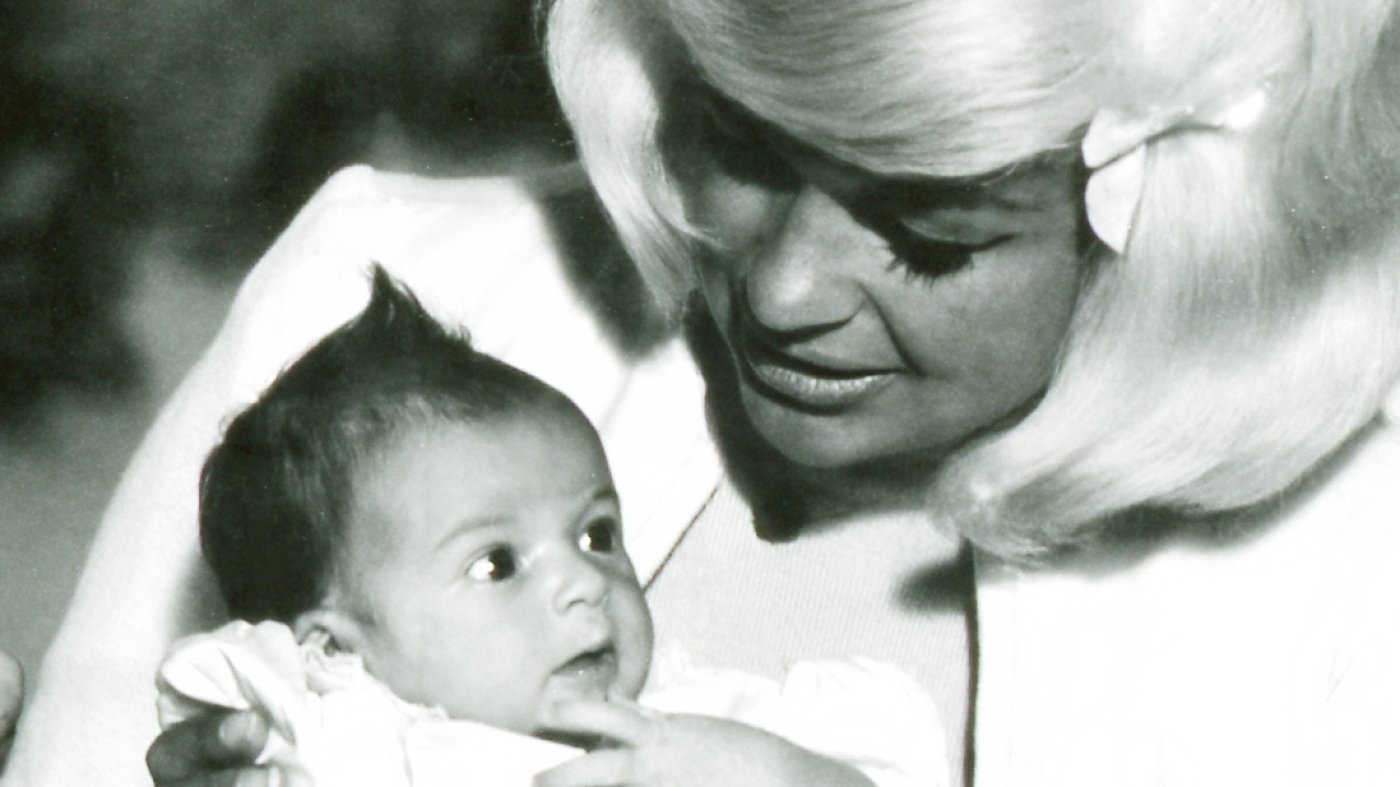 Jayne Mansfield holds her daughter Mariska Hargitay.