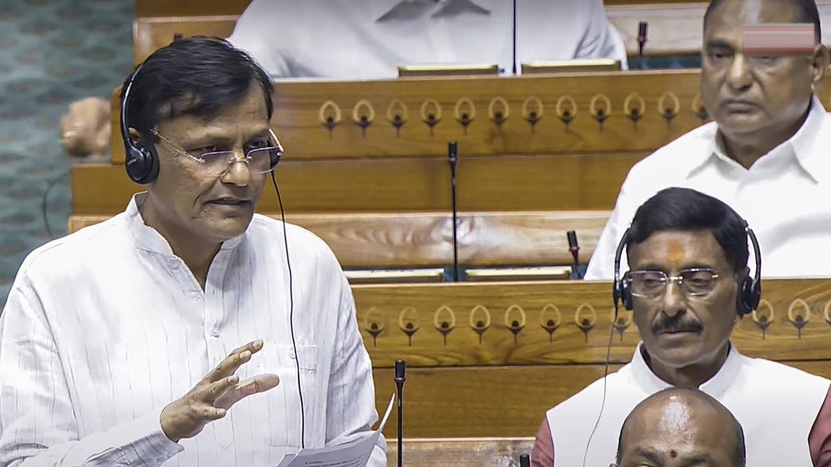 Union Minister of State for Home Affairs Nityanand Rai speaks in the Lok Sabha during the Monsoon session of Parliament, in New Delhi. Photo: Sansad TV via PTI