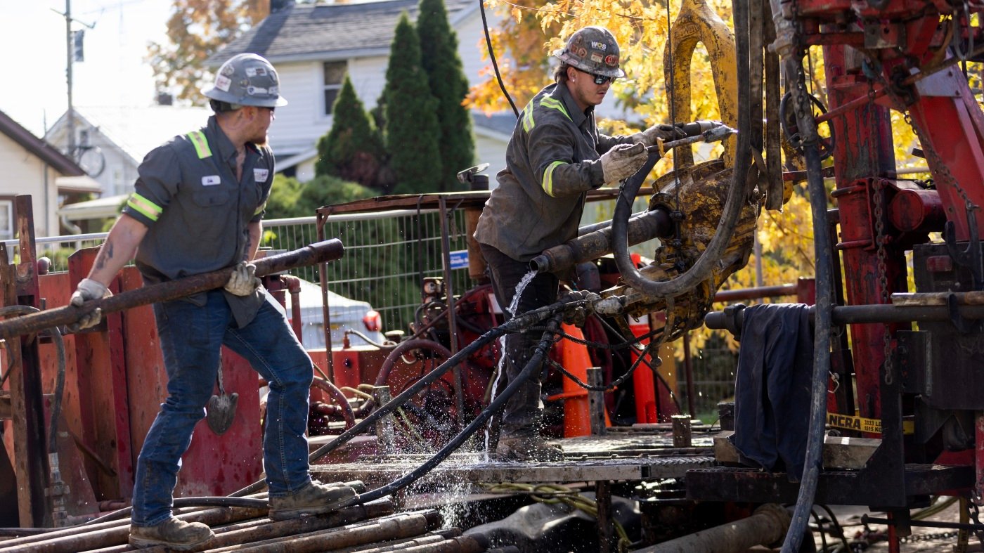 A crew with the company CSR Services works on plugging an orphan well on a homeowner’s property in Ashland, Ohio, on October 24, 2024.