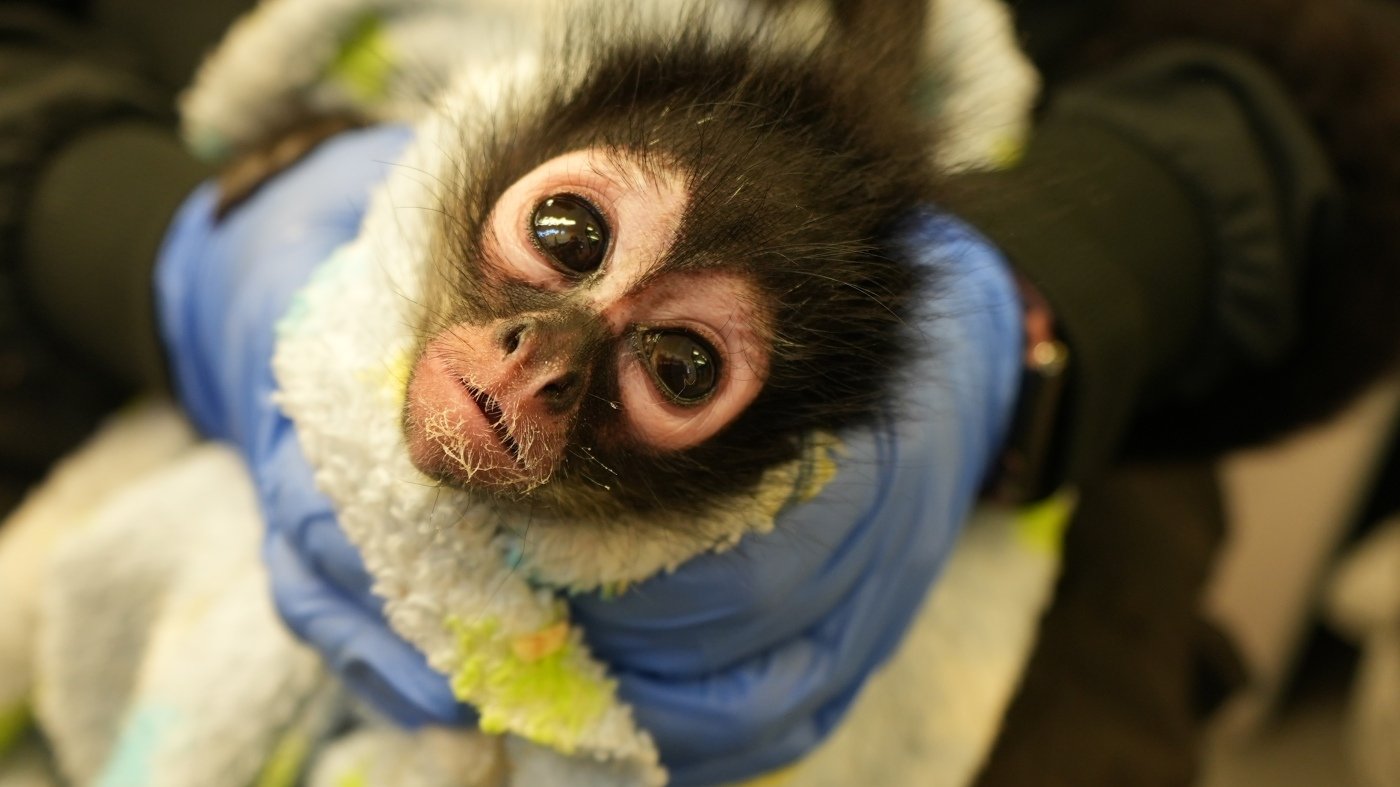 Named Violeta by hospital staff, the monkey — who’s about 18 months old — was poached from the wild and smuggled into California, where it’s illegal to keep primates as pets.