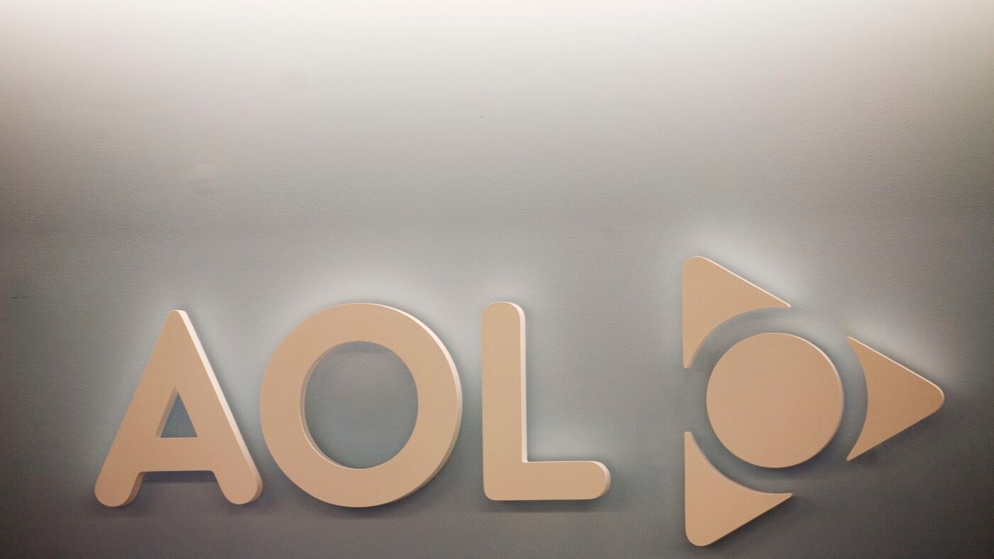 The AOL logo is shown on a wall of the company’s New York office on May 12, 2008.
