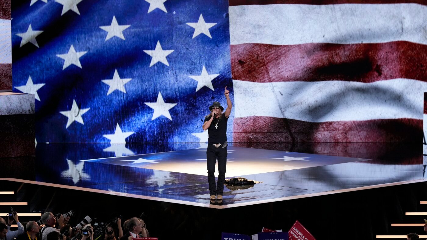 Kid Rock performs during the final day of the Republican National Convention on Thursday, July 18, 2024, in Milwaukee.