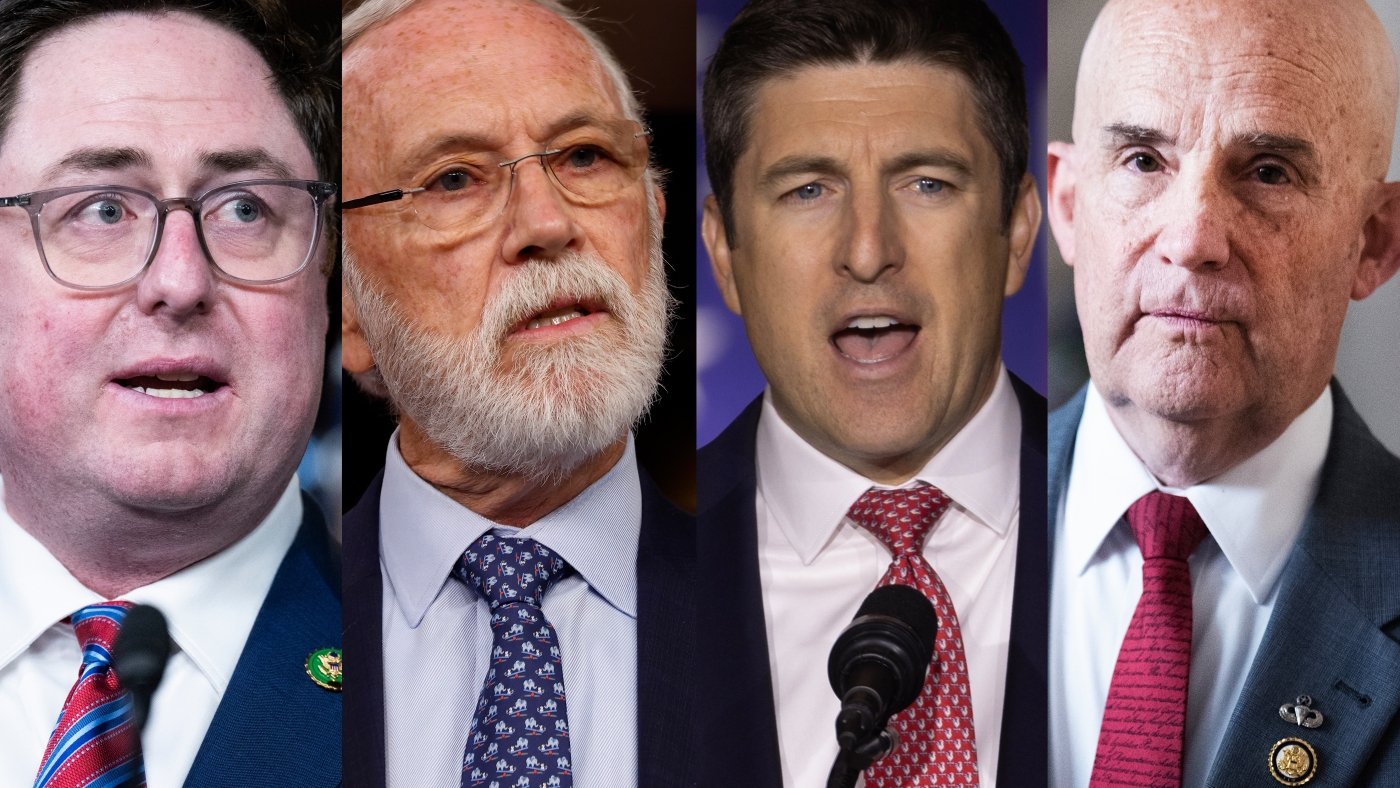 These are a few of Republican lawmakers facing constituents during the August recess from Congress. From left: Rep. Mike Flood, R-Neb.; Rep. Dan Newhouse, R-Wash.; Rep. Bryan Steil, R-Wis.; Rep. Keith Self, R-Texas.