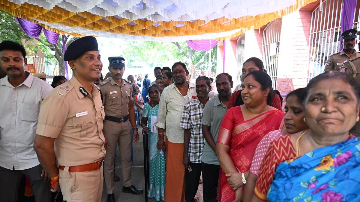 Greater Chennai City Police Commissioner Abhin Dinesh Modak inspected the security arrangements at a polling station located at St. George’s School in Chennai. He examined the arrangements at the cluster booths.