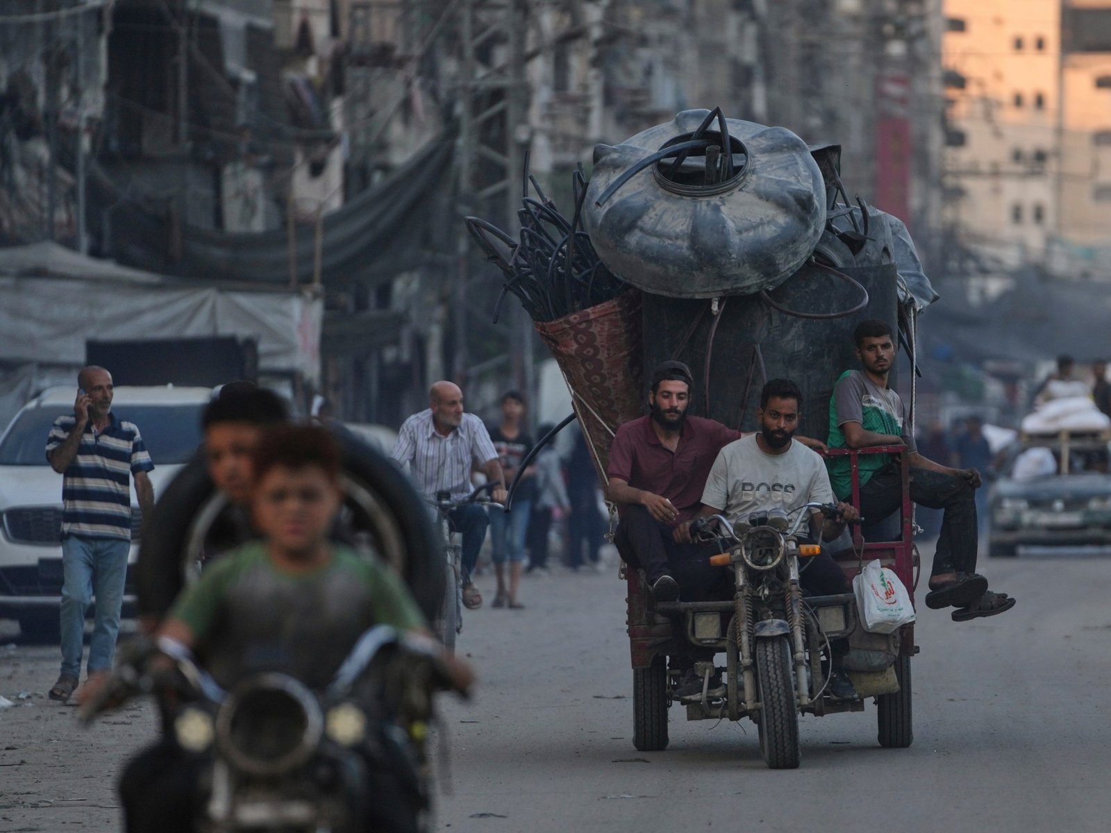 Hundreds of Palestinians have fled Gaza City, piling their few remaining possessions onto pick-up trucks and donkey carts as Israel’s deadly bombings and forced displacement campaign intensifies in the area.