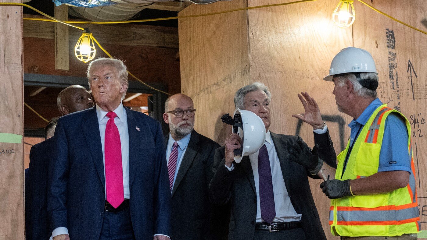 After weeks of publicly criticizing Powell, Trump made a rare visit to the Fed’s Washington, D.C., headquarters on Thursday. During a tour of a $2.5 billion renovation project, Trump stood beside Powell in front of the cameras, waving a document that he said detailed major cost overruns. Powell shook his head in disagreement and firmly pushed back against the claim.